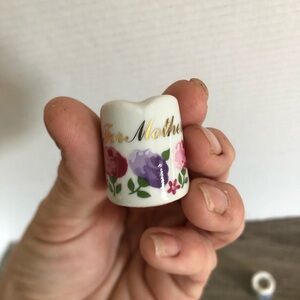 Charming ceramic miniature cups by Russ. Features floral design on one with “Mother” and blue heart designs on the other. Perfect for adding elegance to your decor or as a gift!
