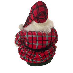 vintage Santa figurine, Santa Claus stuffie doll, plaid velvet Santa decoration, gingerbread Santa figure, holiday Santa collectible, fabric face Santa Claus, Christmas Santa doll, Santa with gold bells, velvet coat Santa Claus, unique vintage Santa, scottish santa