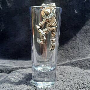 Vtg Santos No 13 Shot Glass w/ Pewter Climbing Mexican 4"H x 1.5"D
