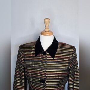 Vtg Satin Stripped Velvet Y2K Classic Tailored Rockabilly Jacket Blazer Sz 12