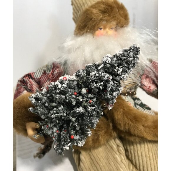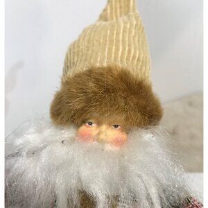 Vtg Scandinavian Santa Claus Doll Corduroy Hat Pants Holding Snowy Tree Sit Hang