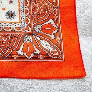 Vtg Scarf Orange & White Floral 21" Square Border Ponytail Neck Tie