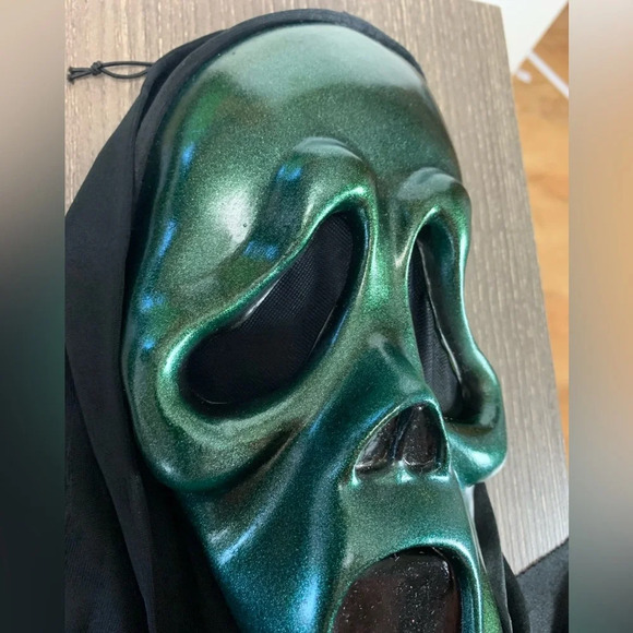 Vtg Scream Halloween Ghost Face Mask Green Shimmer Easter Unlimited Inc FLAWED