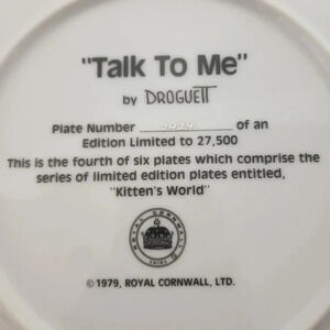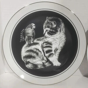 Vintage 1979 set of 2 Royal Cornwall Kittens collector's plates in black/white.