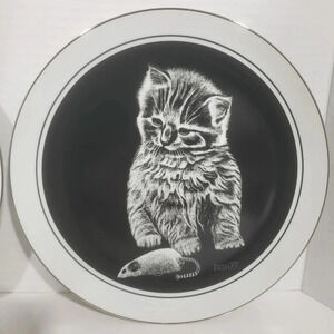 Vtg Set of 2 Royal Cornwall Kittens Black/White Collectors Plates.