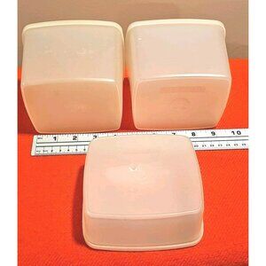 Vtg Set of 3 Tupperware Freezer Mates Container Sheer Almond Lid 80s 90s y2k