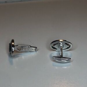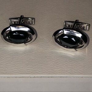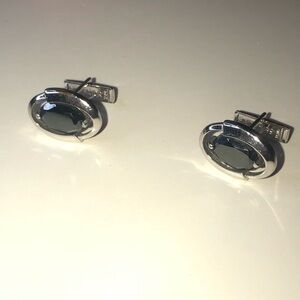 Excellent condition oval shaped hematite Stone Senator cufflinks made by Sherman.