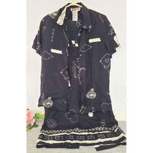 Vtg Simon Chang Set Of Long Skirt And Button Up Top Black & White Casino Print