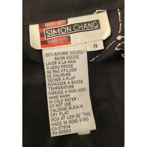 Vintage Simon Chang Set Of Long Skirt And Button Up Top, Black & White, Casino Print, Lightweight, rayone viscose, size 8. The skirt is split at the back and thebtop is with black buttons. Made in Hong Kong, from the 90s.