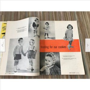 Vintage "Smart Crochet: Fashions and Home Decorating" 10th edition from 1955. 73 page magazine has crochet patterns for the home & entire family. Baby layettes, ladies dresses & outfits, child's clothing, doilies & table linens + more. Fun to look through just for the pictures to see the fashion & home decor styling, and for the retro ads! 73 pages, paper cover, 8 1/2" x 11". Pre-owned, vintage condition: magazine was stapled back together, back cover is missing. Heavy creasing to cover & some page corners.