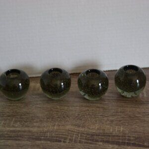 Vtg Smokey Glass Candle Holders With Controlled Bubbles