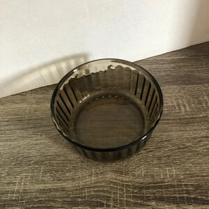 Made by Arcopal France. Ribbed design. Made from smoke glass. Grey/brownish tinge. Excellent condition. No chips or cracks.
