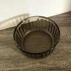 Made by Arcopal France. Ribbed design. Made from smoke glass. Grey/brownish tinge. Excellent condition. No chips or cracks.