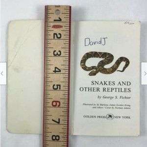 Vintage pocket guide from 1969 "Snakes and Other Reptiles" printed by Golden Press. Beautifully illustrated in full color. Good vintage condition: has names written on cover page. Minor wear to cover (small bends/creases), and to page edges. No loose or missing pages. The photos show the actual book that you will receive. Pocket sized, 4 1/4" x 7", 79 pages.
