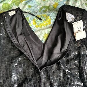 Vtg Stenay Black Multi Color Floral Silk Beaded Sequin Evening Blouse Top Size S