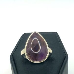 Vintage sterling silver and amethyst stone ring - large tear drop / pear shaped stone - natural inclusions and colour variations within the amethyst stone.