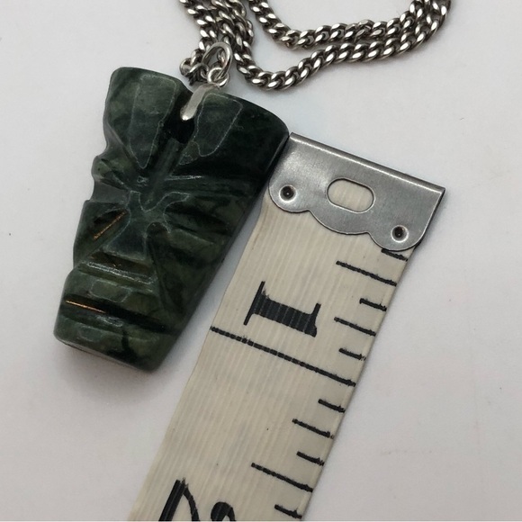 Vtg Sterling & Jade Green Stone Aztec Mayan Head Pendant w Chain 20” + 1.2”