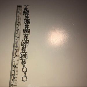 บVtg Sterling Silver Chinese Character Square Link Bracelet Toggle Clasp 8.3โ- 9โ