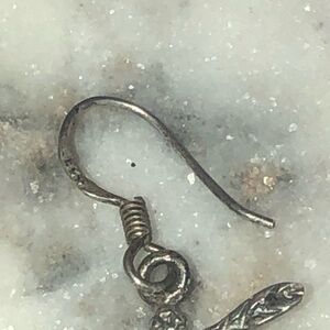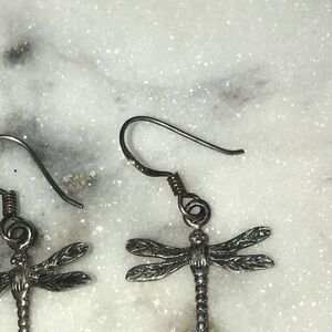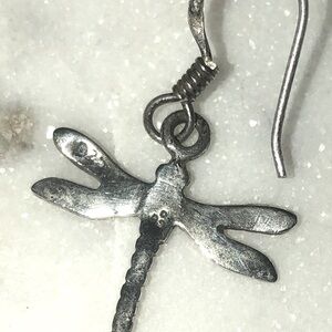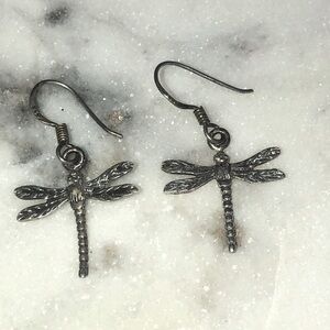 Vtg Sterling Silver Dragonfly Insect Dangle Earrings Shepherds Hook Posts 1.4”
