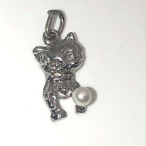 Vtg Sterling Silver Kitten & Ball Mini Charm / Pendant