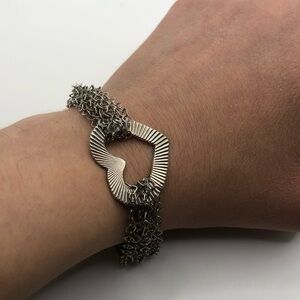 Vintage Sterling Silver multi strand chain bracelet with textured heart - stamped 925 Italy on toggle clasp.
