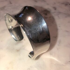 Vintage 925 CMM Sterling Silver Wide Curved Cuff Slightly Adjustable