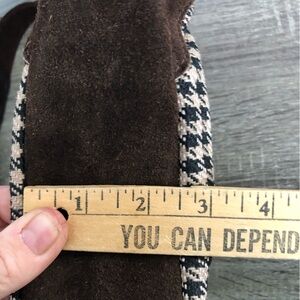 Stylish women's bag featuring a classic brown and black houndstooth pattern. Perfect for adding a touch of elegance to any outfit.