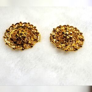 These elegant gold filigree sweater button clasp or connector. Gold tone, in excellent conditon.