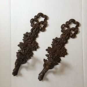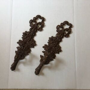 Elegant floral wall mount candle holders with intricate design. Perfect for adding a touch of vintage charm. Made by Syroco in 1969. Lovely resin molded candle holders that hang on a wall. Floral design with a bow at the top.