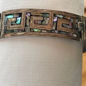 Vtg. TAXCO MEXICO STERLING SILVER 4 Panel Cuff Bracelet ABALONE INLAYS "Eagle 4"