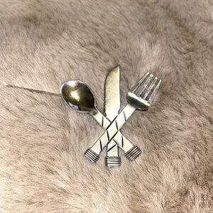 Vtg Taxco 925 TL-115 Fork, Spoon, Knife Pin Vintage Cook Chef Brooch / 14g
