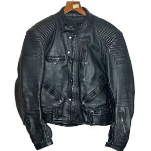 Vtg Teknic Black Leather Motorcycle Jacket Men’s Sz 40/50 Padded Biker Cafe Race