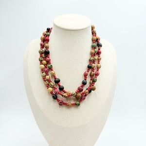 Vtg Tibetan Ethnic Regional Multicolor Wooden Beaded Red Coral Praying Necklace