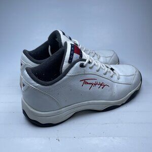 Vtg Tommy Hilfiger Men 7 US Sneakers White Leather Red Logo Retro 90s Rare Read*