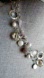 Three strands rhodium silver chains. Hammered disc and link chains. All naturals beads and charms. Señorita spring clasp closure. Natural cultured pearls, faceted gray stone and smoke quarts gemstones.