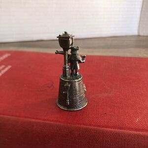 Charming silver figural thimble featuring a character holding a lantern. Intricate details and a classic design.
