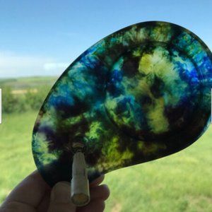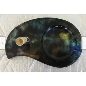 Vtg Translucent Blue & Green Hand Made Resin Pen Holder Desk Tray