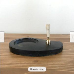 Vintage resin pen holder has a recess in the base to hold paper clips, etc.. Translucent blue & green resin is vibrant on a glass or white surface, and is more opaque on a darker surface. Teardrop shape is 5 1/2" long x 3 1/2" wide x 1/2" thick. Pen holder stands 2" from base. Pre-owned condition, pen holder has some ballpoint pen ink residue.