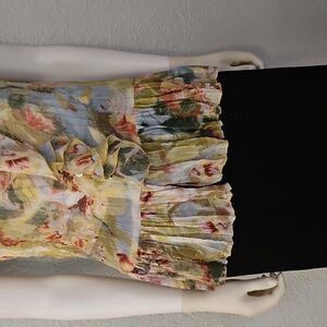 Embrace elegance with this floral ruffle button down blouse. Perfect for any occasion, this top features a beautiful blend of colors and a flattering fit.