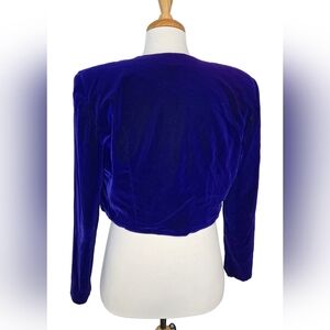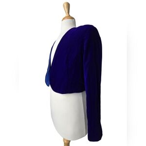 Vtg Vanessa Stevens Royal Blue Velvet Cropped Open Jacket Made in Canada Size 14