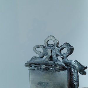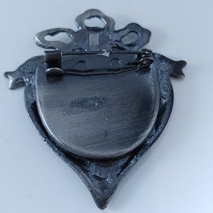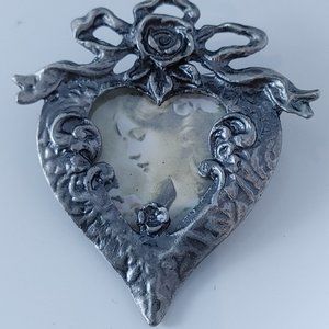 Vtg Victorian Style Heart and Roses Brooch Pewter Gray