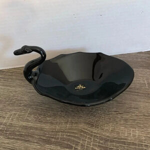 Elegant black swan candy dish or decorative bowl. Black glass. Made by Viking Glass in the USA.