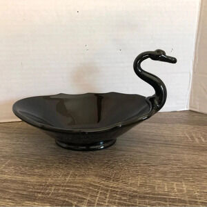 Vtg Viking Glass Black Swan Candy Dish
