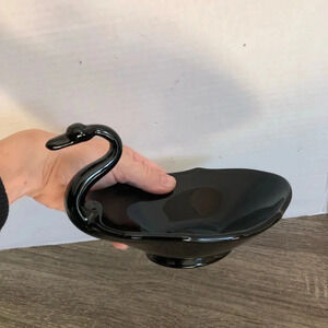 Elegant black swan candy dish or decorative bowl. Black glass. Made by Viking Glass in the USA.