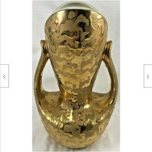 Vintage Weeping Bright Gold 24k USA Double Handle 9" Fish Mouth Vase Urn, Regency Decor