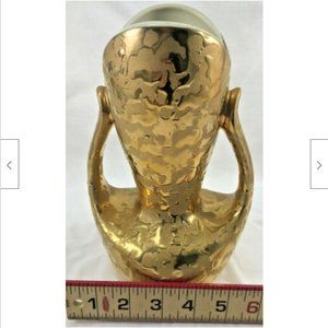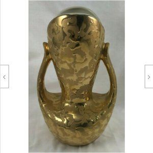 Vtg Weeping Bright Gold 24k USA Dble Handle 9" Fish Mouth Vase Urn Regency Decor