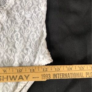 Elegant lace bodysuit. Deep V-neck design. Perfect for layering. Buttons on the very bottom make it perfect in case you need to actually go to the washroom.