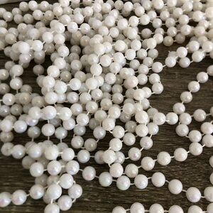 Listing includes three garlands: 104”, 102” and 101 1/2” approximately. Totalling over 300” of gorgeous beaded pearls.