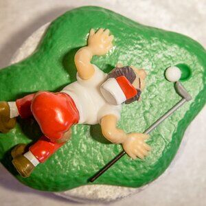 Vtg Wilton Comical Golfer Cake Topper Decoration Blowing Ball into hole.