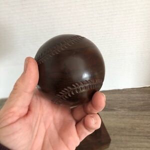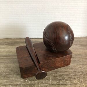 Elegant wooden baseball and bat decor piece. Perfect for sports enthusiasts. Can also be used as a paperweight. I believe this is made from Ironwood (based on research), very heavy for its size.